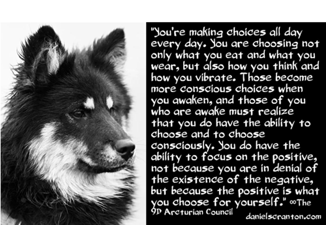 When you align with higher-dimensional beings who are offering a higher vibration, as we are, you get to experience what it is like to align with those energies, and then you have to choose. You’re making choices all day every day. You are choosing not only what you eat and what you wear, but also how you think and how you vibrate. Those become more conscious choices when you awaken, and those of you who are awake must realize that you do have the ability to choose and to choose consciously. You do have the ability to focus on the positive, not because you are in denial of the existence of the negative, but because the positive is what you choose for yourself and for others.
